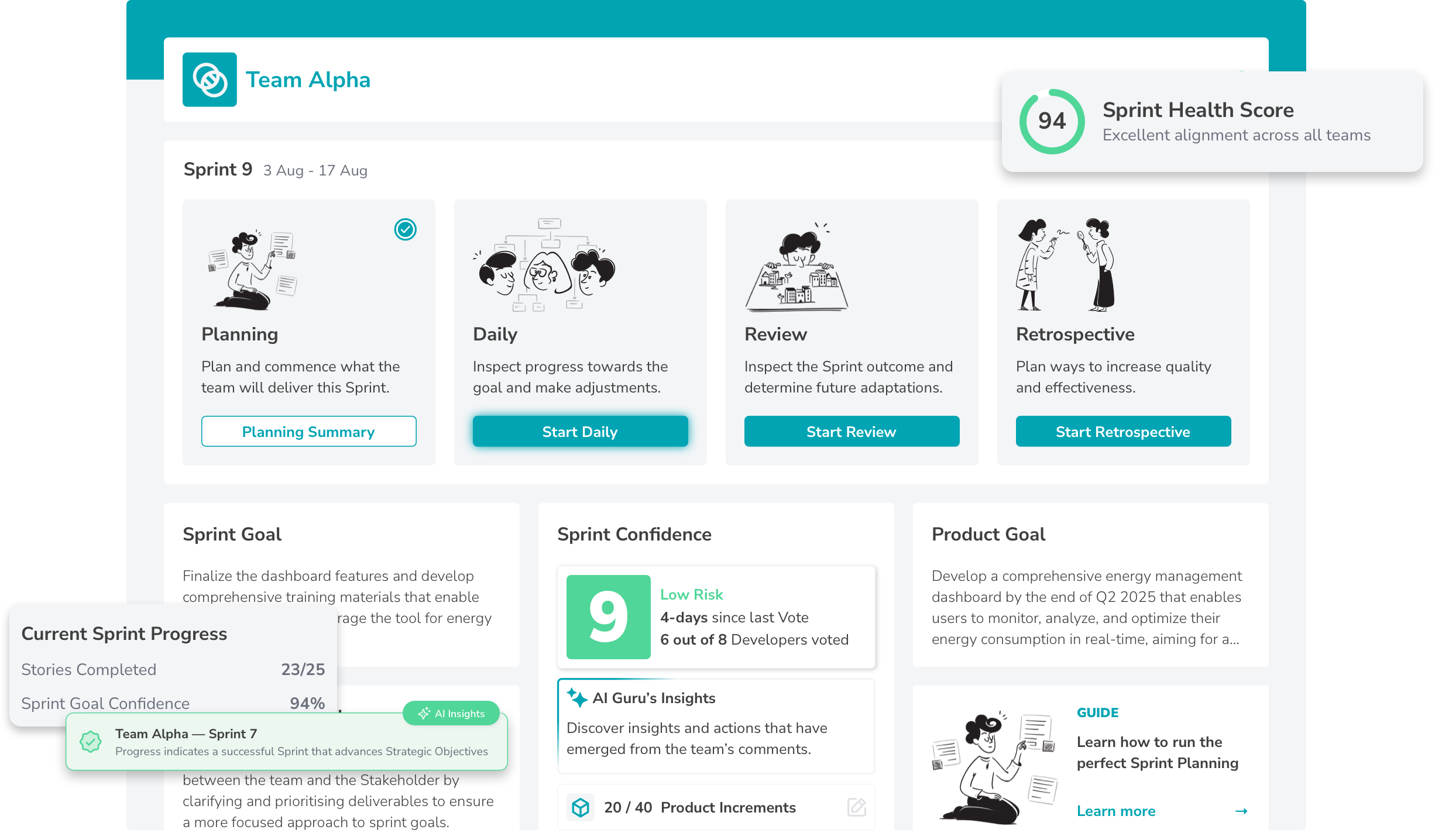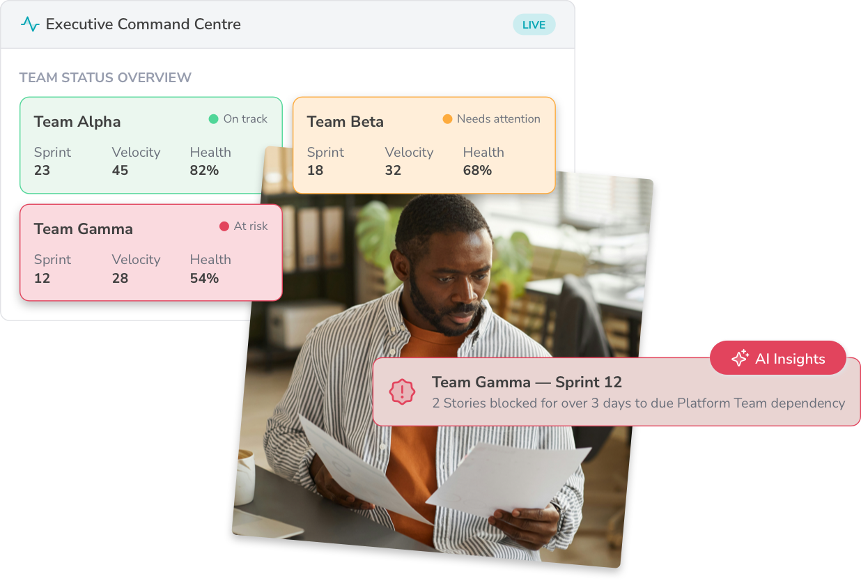 Performalise monitors team health, process quality, and delivery patterns to surface execution issues early. You catch process breakdowns. You identify team friction. You keep every team operating at peak performance, every sprint.